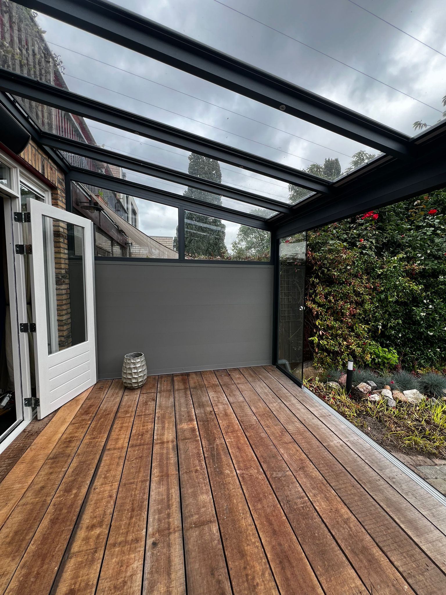 Onze glazen schuifwanden zijn de perfecte toevoeging aan jouw buitenruimte, waardoor je het hele jaar door kunt genieten van een naadloze verbinding tussen binnen en buiten. Met een strak en elegant ontwerp bieden ze maximale transparantie, natuurlijke lichtinval en bescherming tegen de elementen.